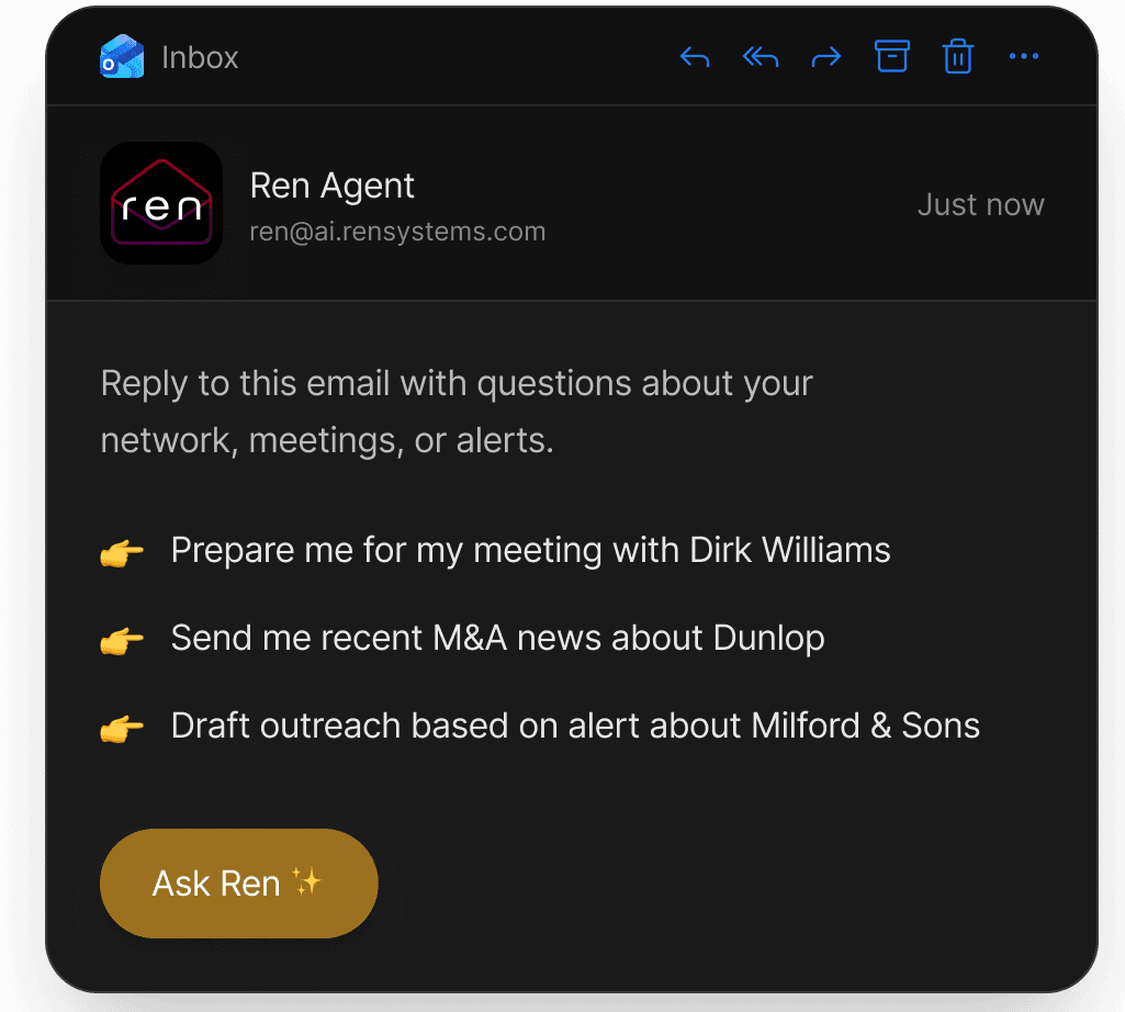 Ren Agent is available via email, so users can just reply to their Digest to get instant answers