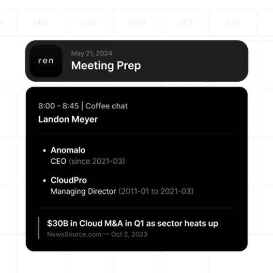 Ren integrates with Outlook, Calendar, CRM, LinkedIn, and iOS